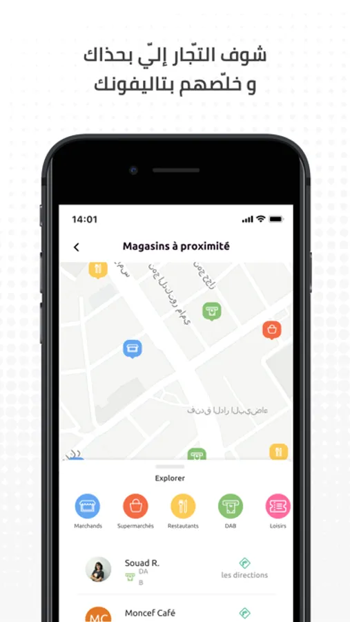 You now have access to a wide range of partner merchants across Tunisia. You can pay through the app by simply scanning the QR code shown on the counter or the checkout page.
