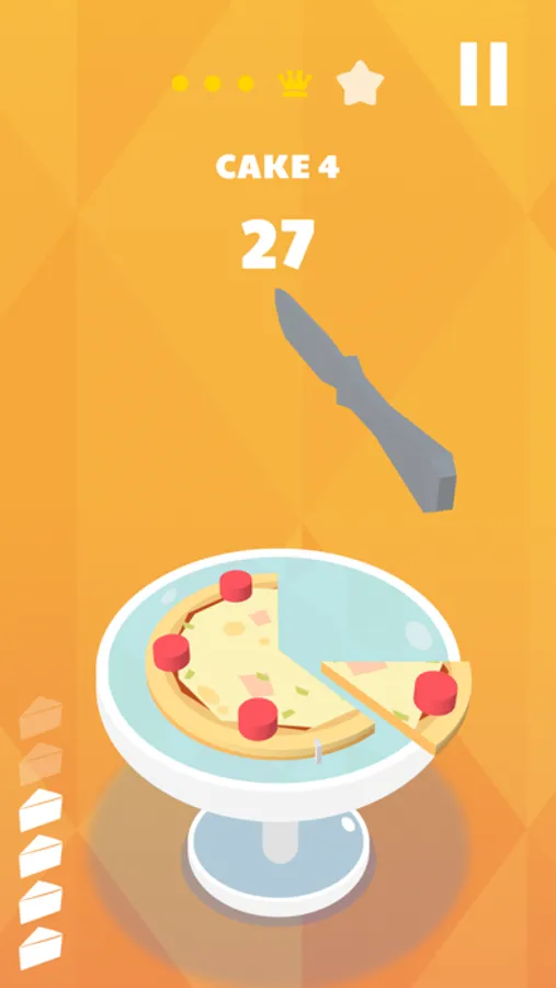 Cut those tasty looking cakes but watch out not to hit those fancy decorations! The further you go the more slices you need to cut while there will be more and more decorations and the cake spin will be crazier and crazier.