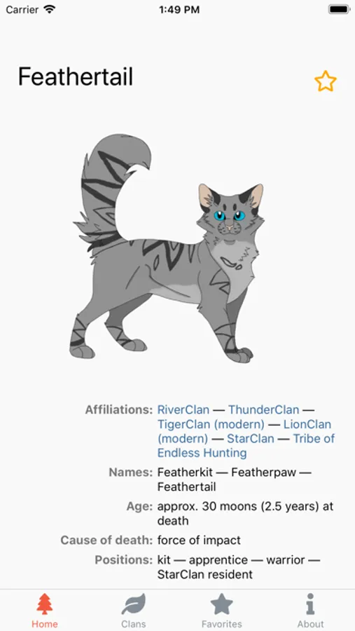 The app will be useful for both experienced fans and beginners in the world of Warriors. Meet the cats that rule the wild!