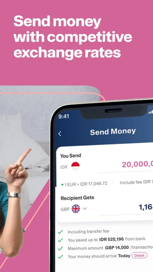 Send money abroad from Indonesia to 50+ countries safely and simply with Transfez. We eliminate unnecessary processes so you can send money easily for your business needs, family, friends, or loved ones abroad. Save more money and time on instant transfers with fixed fees, no extra charges, and no fees for recipients.
