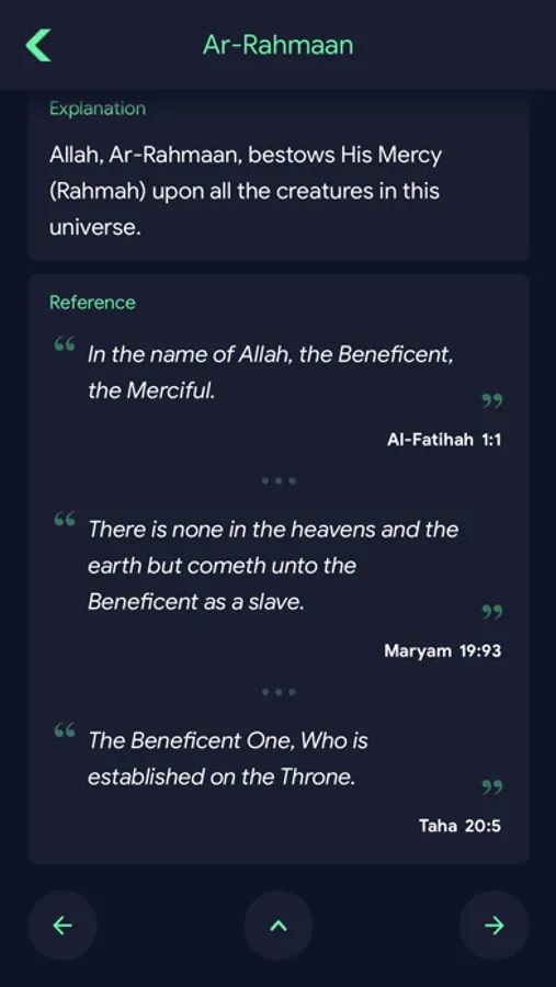Asmaul Husna, which means the most beautiful names; it is used for the 99 Names of Allah, the owner of both heaven and earth, the creator of the universe.The importance of Asmaul Husna is emphasized in the Holy Quran and Hadith in every field. Every believer who has faith in Islam must learn the names of Allah and repeat them continuously. Our Prophet (S.A.W.) wanted these names to be known, to be quoted and to be felt with contemplation at any moment. Whoever memorize the names of Allah by understanding is heralded with paradise. With the Asmaul Husna application you can read names of Allah with its readings, short meanings, long explanations. Also you can dhikr names of Allah and test yourself with Arabic Asmaul Husna quiz. The importance of Asmaul Husna is stated in verses and hadiths: