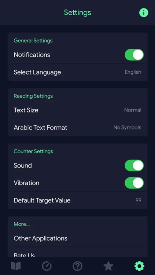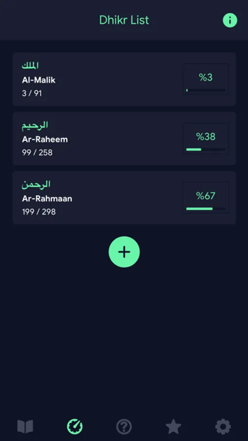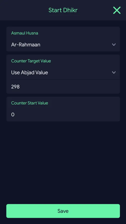 It is very easy to dhikr for the 99 Names of Allah with the smart tasbih in the Asmaul Husna application. Tasbih counter offers accessibility options such as audible and vibrating alerts, as well as useful features such as initial value and counter target settings. You can select the counter target as Asmaul Husna Dhikr Numbers (according to the abjad values) or you can perform a free Asmaul Husna tasbih.