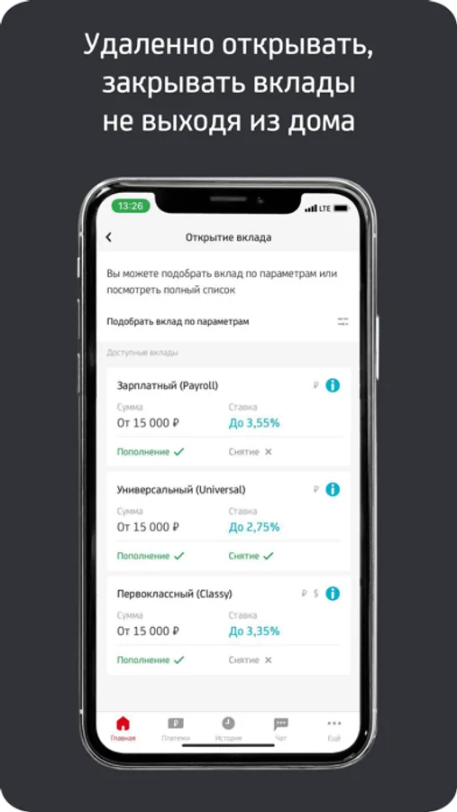 — replenishment, partial or early withdrawal, changing the parameters of deposits;