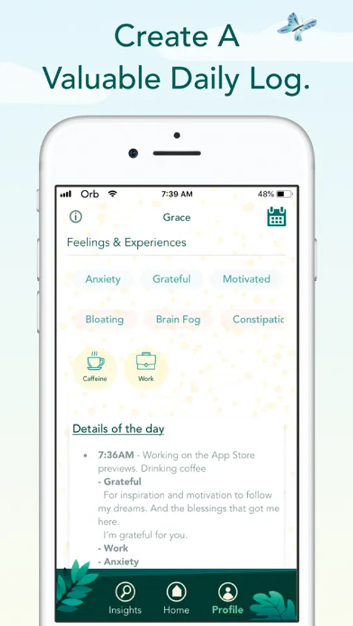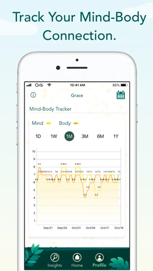 Using the data from your Check-in’s, Orb provides you with personalized insights, tracks your mind-body connection, and serves as a valuable daily log.