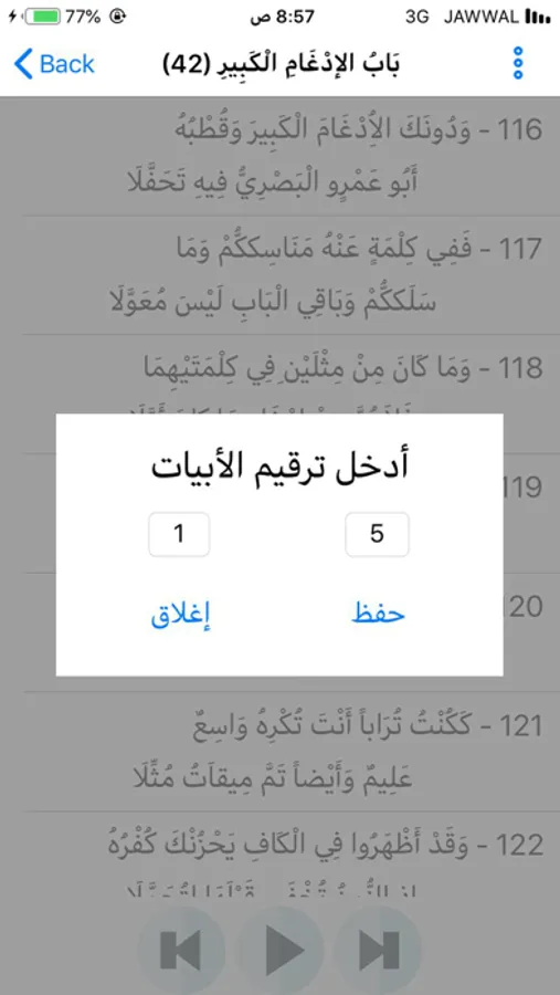 منظومة القراءة بقصر المنفصل مع توسيط المتصل من طريق روضة الحفاظ لابن المعدل