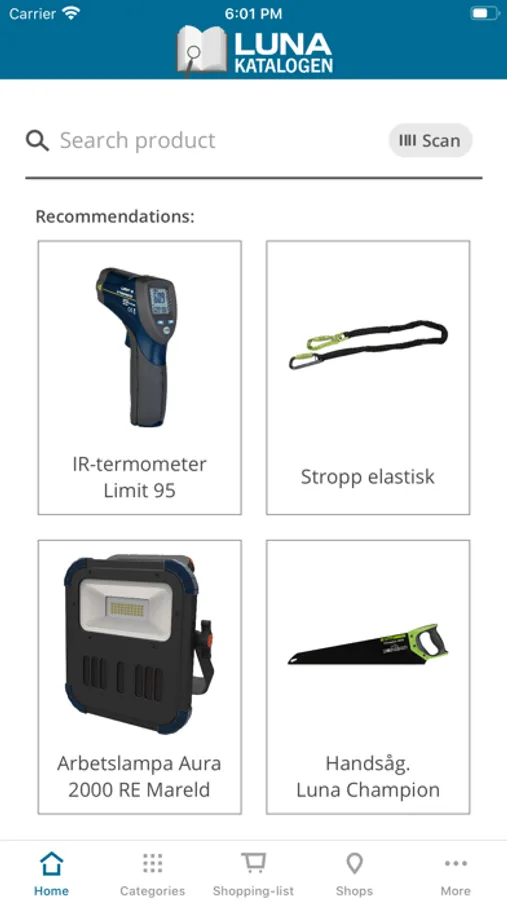The app Lunakatalogen helps you find over 50,000 tools and supplies for professional users in industry and construction.
