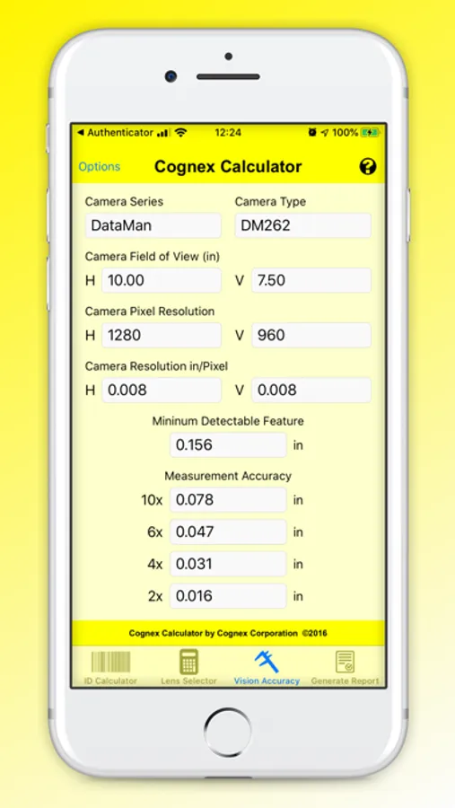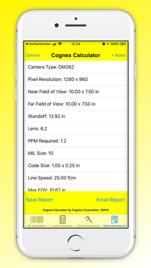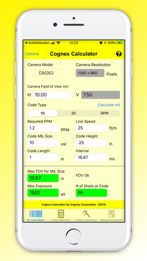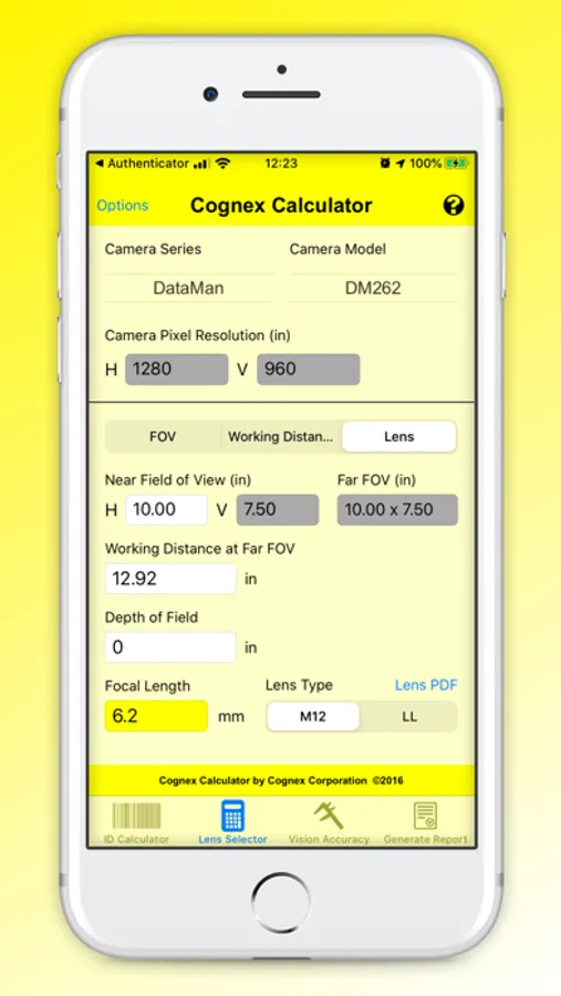 Calculate the Field of View, Working Distance, and best Lens to use based on DataMan model and barcode type.