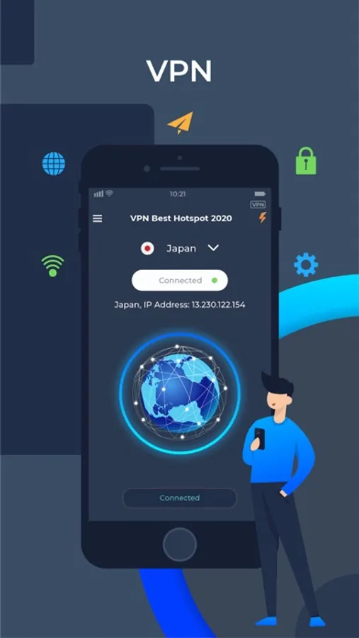 - You will have a VPN without limits, 4 server availability, Automatic server for the best connection, connect in one click, large bandwidth, no browsing activity log, secure, fast and easy to use.