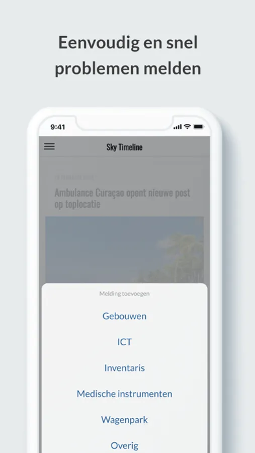 Vul de checklists direct in op je smartphone en maak gebruik van de mogelijkheid om snel te melden. Bekijk ook de catalogus van je organisatie en schrijf je eenvoudig in op scholingen. Het kan allemaal met de nieuwe Sky App!