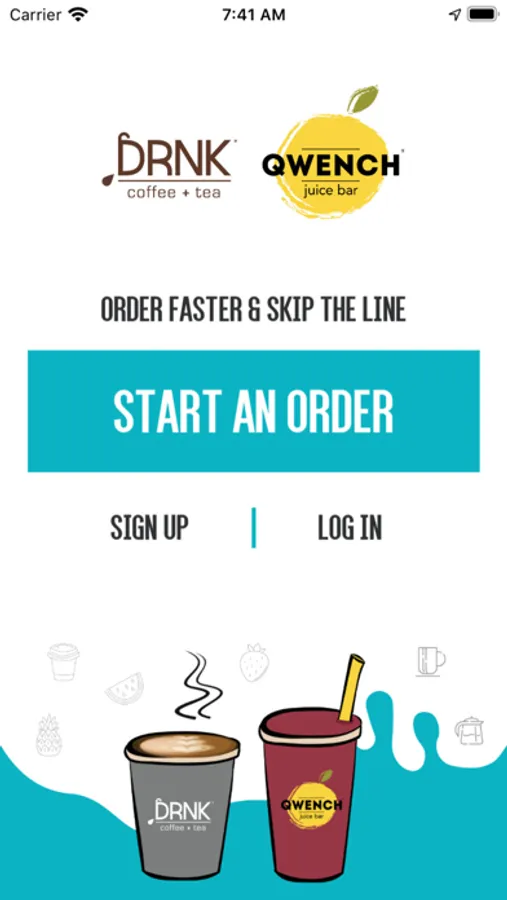 Ordering from DRNK coffee + tea and QWENCH juice bar has never been easier! Use GPS to find a location near you, review the menu, place your order, and it’s ready when you want it. Since you can pay in the app, there's nothing to do but skip the line, grab your food and go. And earn points for every order and get rewards in the process!