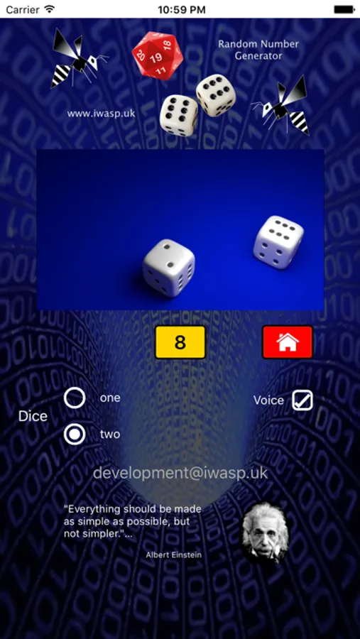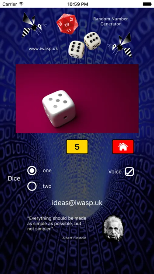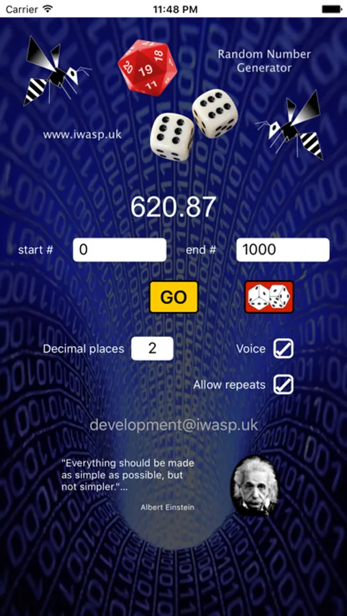 Your generated random number is displayed on screen and also read out loud to you.