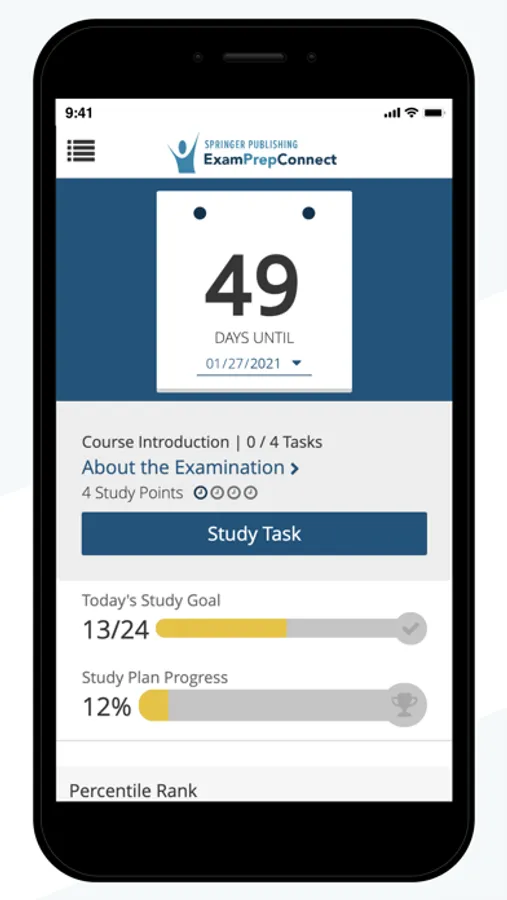 Interactive and flexible, ExamPrepConnect provides lessons, practice questions and exams with remediating rationales, and much more to help you study. A Study Plan keeps you organized and on track to complete your studies by your test date. Robust analytics highlight your strengths and weaknesses, so you know where to focus.