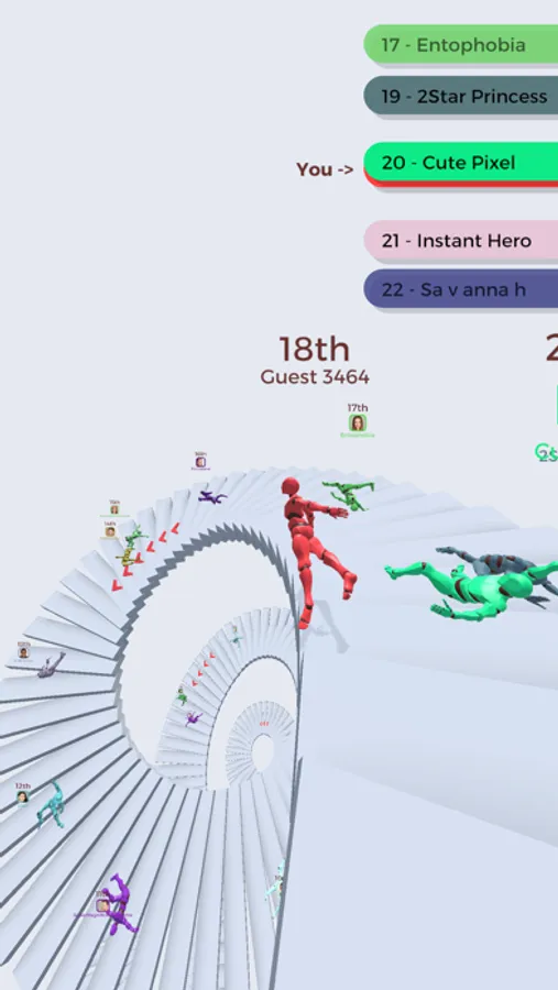Slide your finger to guide your ragdoll down incredibly huge stairs!