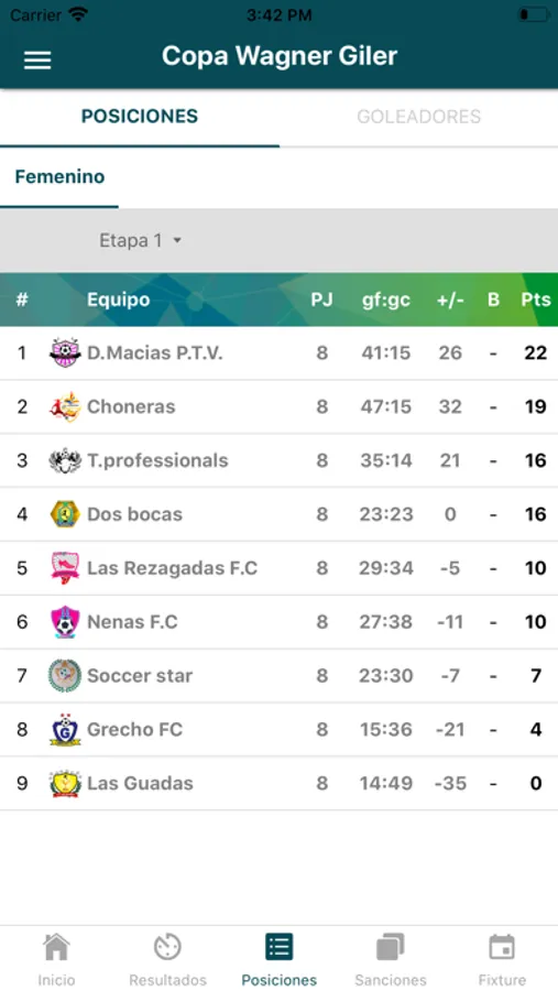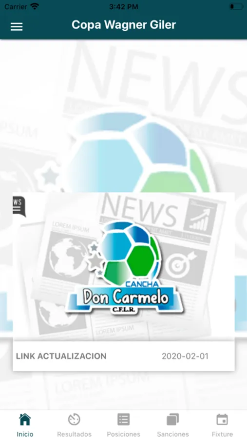 Información detallada de sanciones, jugadores, tabla de posiciones, resultados, noticias, contacto y más!... de La Cancha Don Carmelo