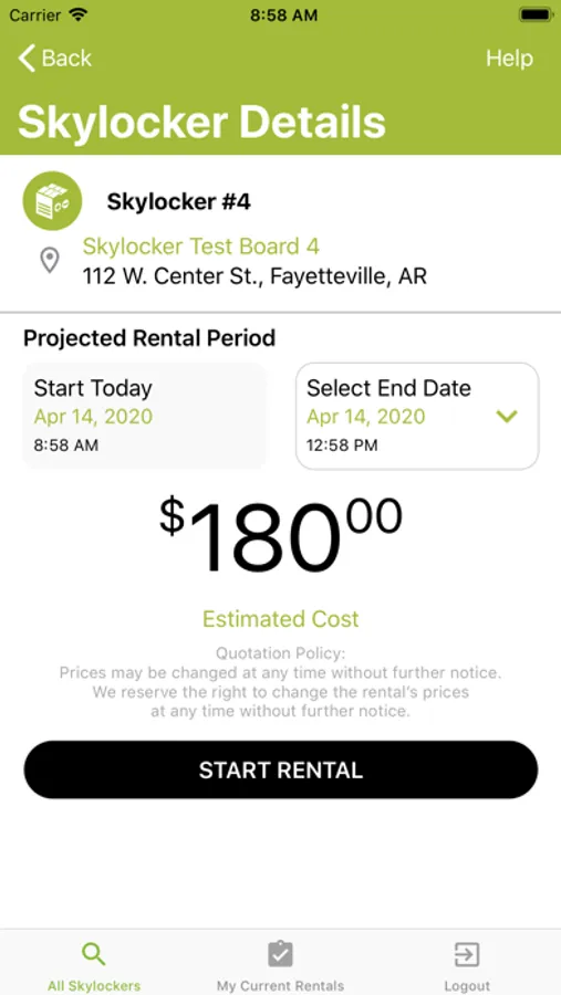 Schedule and maintain current rentals, see costs & more in the sleek user friendly interface. Even call off your rental with just the click of a button! Download the app to see how Skylocker is changing traditional rental experiences.
