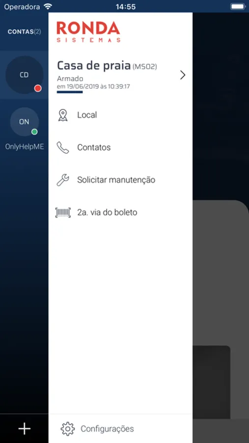 O Ronda Sistemas permite que você interaja com o seu painel de alarme diretamente no seu smartphone. Com ele o cliente monitorado pode acompanhar diretamente via celular ou tablet todas as atividades do seu sistema de segurança. Por meio do aplicativo é possível saber o status do painel de alarme, armá-lo e desarmá-lo, visualizar as câmeras ao vivo, verificar eventos e ordens de serviço abertas e realizar chamadas telefônicas para contatos cadastrados no seu perfil. É a segurança que você precisa na palma da sua mão.