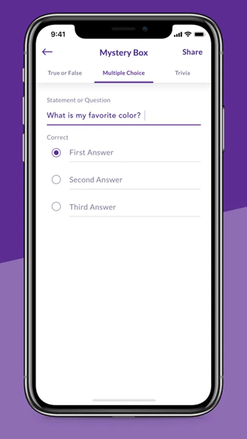 -The multiple-choice Mystery Box is a great way to ask questions. Ask a question or share an inside joke. Only the friends who know the answer will be able to unlock the Mystery Box and reveal your post.