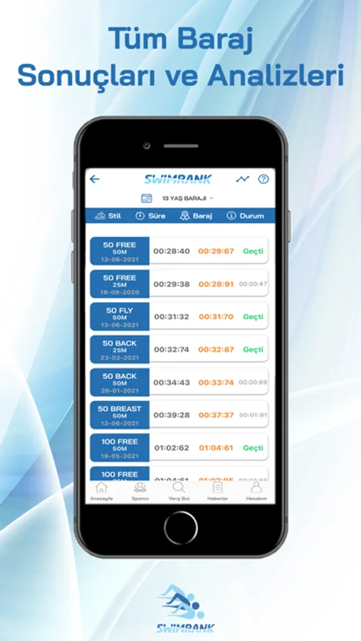 -Her yaş ve stile ait barajlar ve yüzücü performansları,