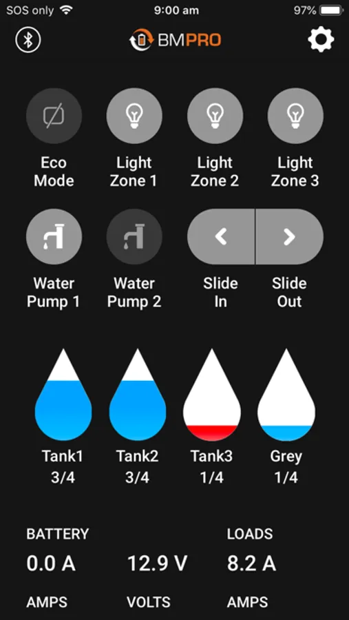 - Is BMPRO SmartConnect ready (for 2020 models onwards) – allows to connect multiple Bluetooth sensors, such as up to 4 temperature sensors (SmartTemp), two gas bottle level monitors (SmartSense) and up to 4 tyre pressure monitors (SmartPressure).