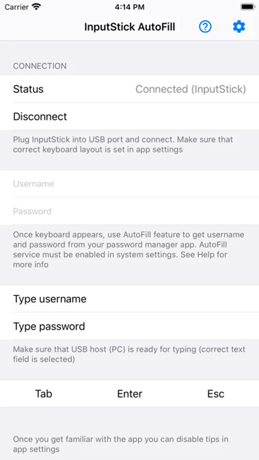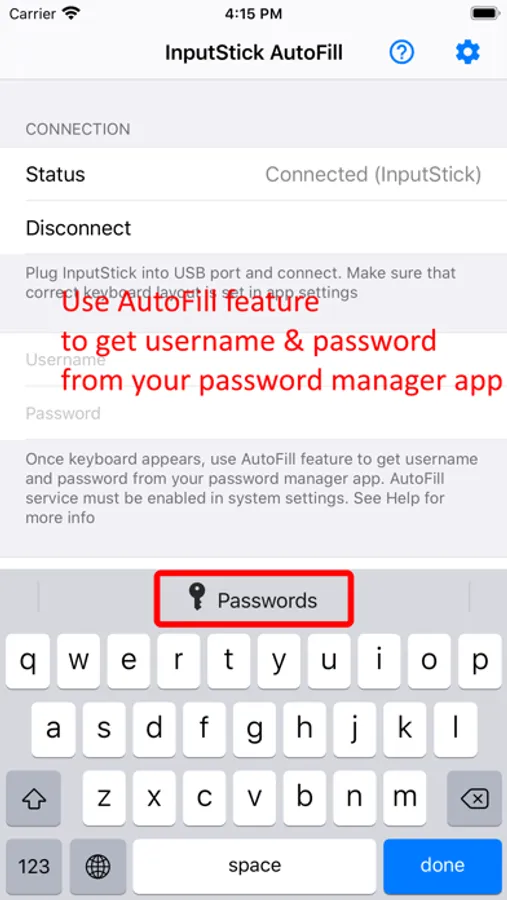 InputStick AutoFill app allows you to type login credentials (username and password) stored in your password manager app via USB in just two simple steps: