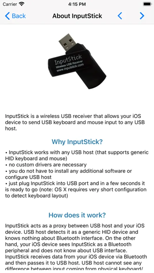 *** InputStick USB receiver (Bluetooth 4.0) is required! App does NOT work over USB cable! ***