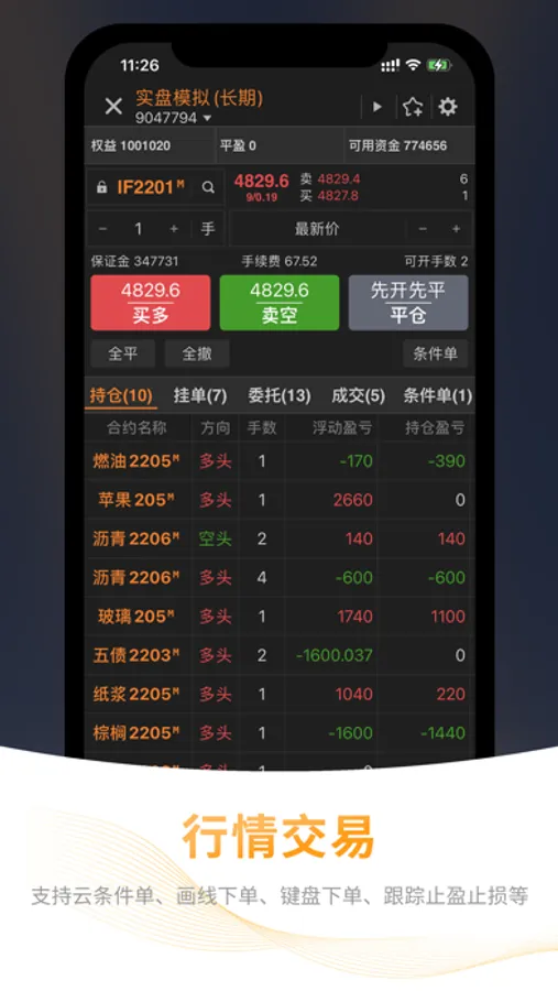 5、模拟交易训练,实现7*24小时模拟训练,随时随地练习盘感、验证交易策略。