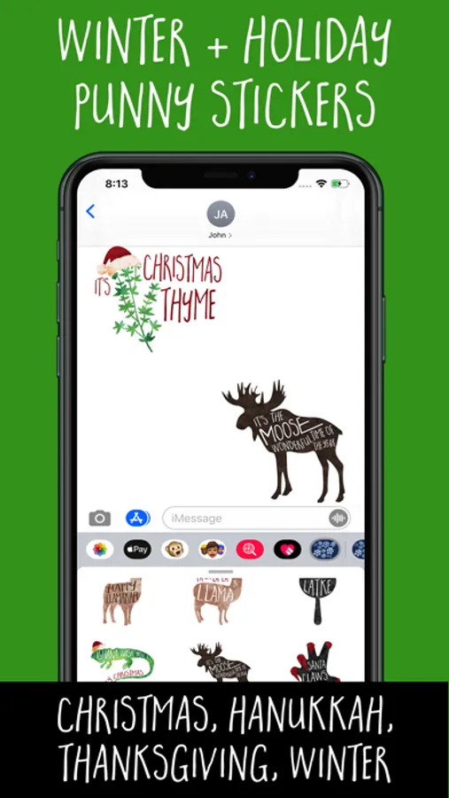 This pack includes funny stickers for the winter and holidays, including Thanksgiving, Hanukah, and Christmas.