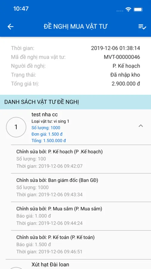 Phần mềm quản lý kho vật tư của công ty cổ phần Công nghệ nông nghiệp và thủy sản Agritech.