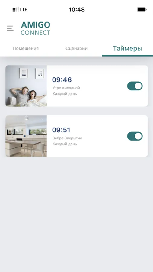 Приложение AMIGO CONNECT позволяет управлять системами солнцезащиты AMIGO при помощи смартфона из любой точки земного шара. При этом есть возможность создавать различные сценарии работы изделий в зависимости от дня недели, времени суток и даже восхода/захода солнца, полностью автоматизируя их. Приложение имеет понятный, интуитивный интерфейс, рассчитанный на широкую аудиторию, а настройка сопровождается подсказками на экране.