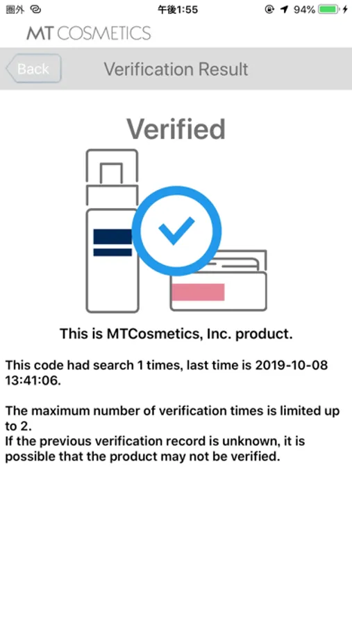 (4)If the product has already registered as a genuine product, you can view the number of past verification and the last verification date.