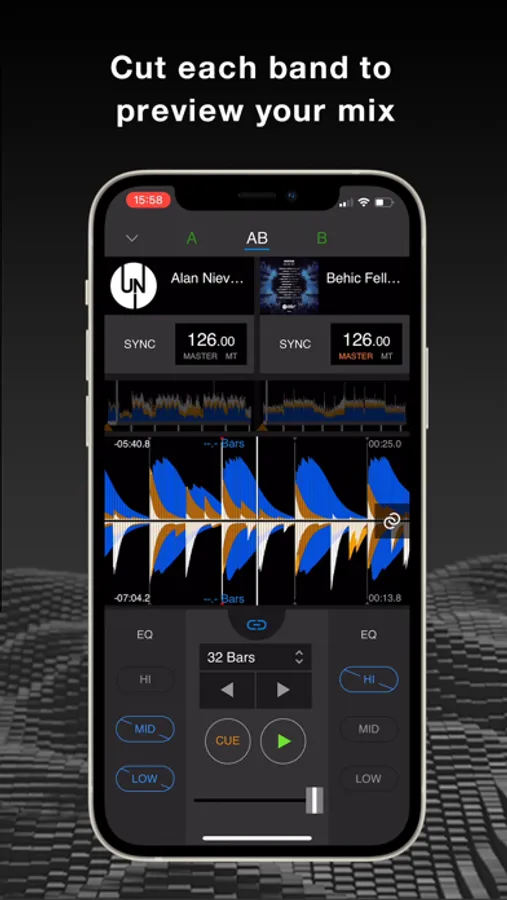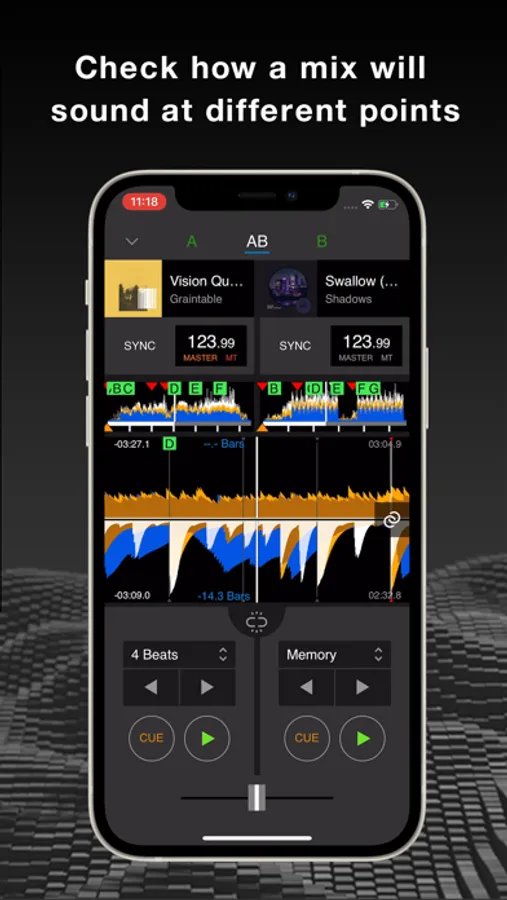 -First, use Beat Sync to match the tempo and beat, then you're ready to move the faders to blend the tracks together.