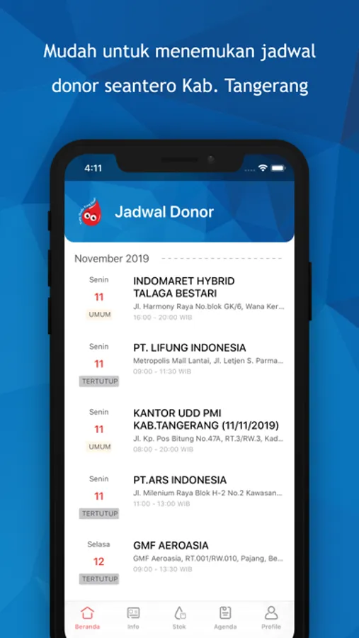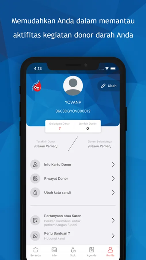 Pendonor yang telah mendownload aplikasi dapat mengisi inform consent donor (formulir donor) secara online dan tinggal menunjukan kartu donor digital yang terdapat didalam aplikasi, sehingga dapat meminiimalisir antrian pengisian infom consent (formulir donor)