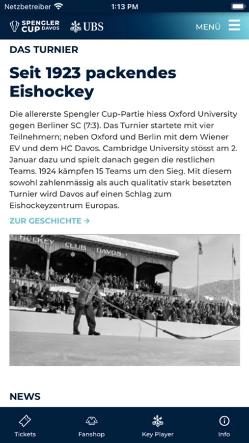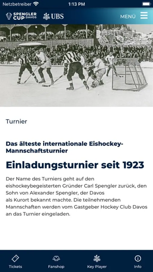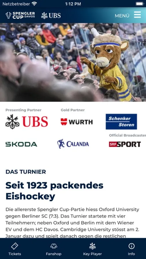 Game-ticker, live stream, line-ups, schedules and rankings. News and background stories about the participating teams and players. Current offers from Ticketing and Fanshop, as well as information about travel, entertainment and catering. And with the Spengler Cup App, you determine the UBS key players for each game. Which player impressed you the most? Choose who should be awarded the most valuable player by our presenting partner UBS at the end of the game!