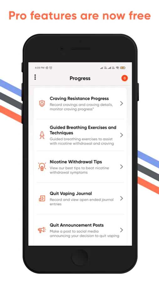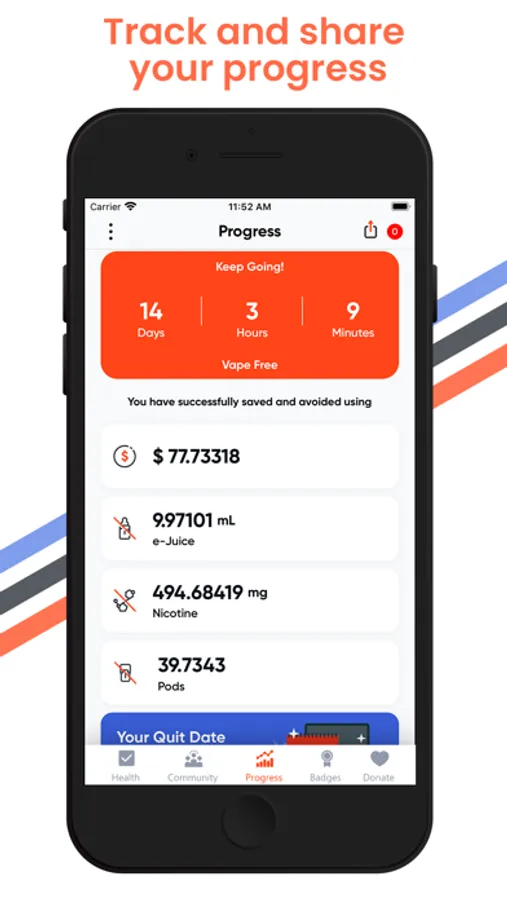 - Track progress stats for any vape device you are quitting