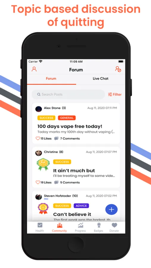 Join others sharing experience, advice and more in the forum and live chat. Use the forum filtering system to find posts covering a wide variety of topics; from experiences with NRT, check-in posts at a variety of dates vape free, advice, success and more.