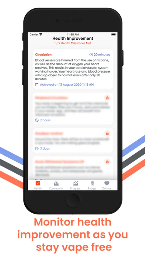 Track health improvement across a variety of categories as you remain vape free