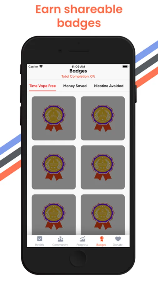 Earn up to 22 badges that mark milestones along your quitting process that you may share to Twitter, Facebook or the forum. The badge categories are: