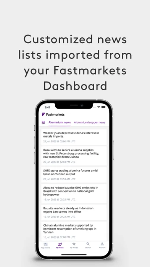 • Import customized news lists from your set up on the Fastmarkets Dashboard