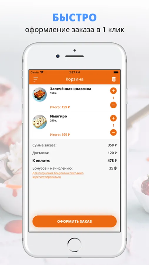 Скачивайте наше приложение, оформляйте заказ и наслаждайтесь любимой едой, где бы Вы ни были! Приятного аппетита!