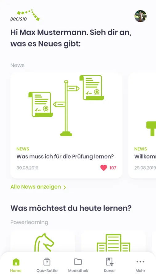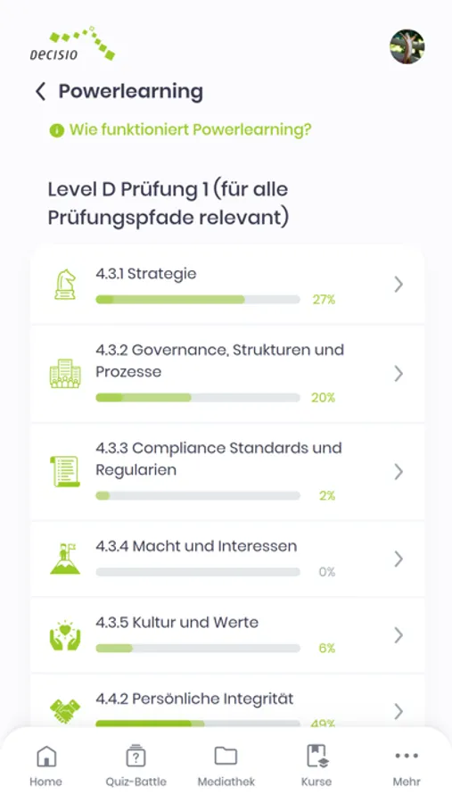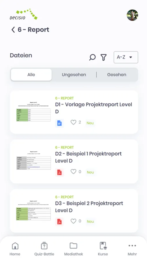 Decisio-Kursteilnehmer können passend zu ihren Kursen folgende Funktionen nutzen: