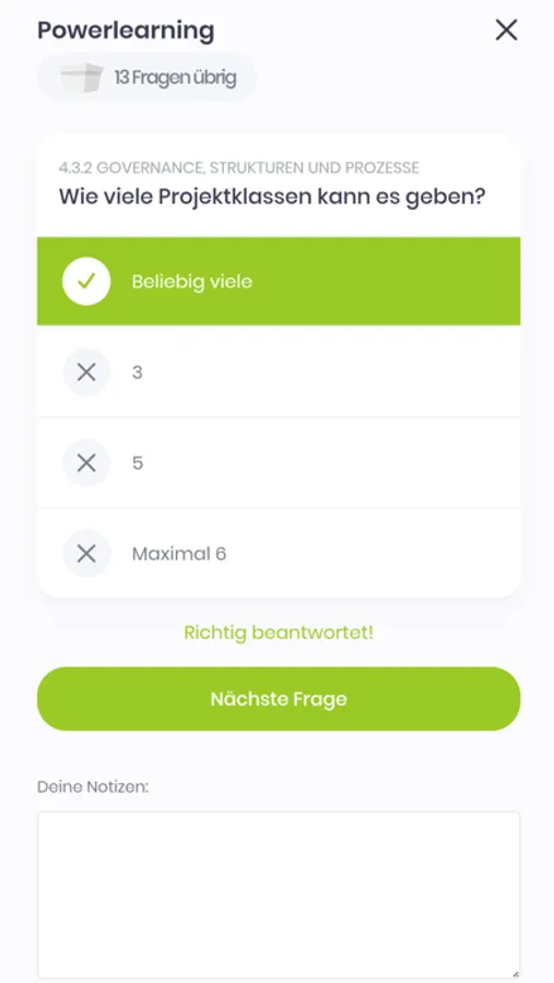 Die Freischaltung erfolgt mit deinem Kurs-Code. Wenn du deinen Kurs noch nicht bei Decisio gebucht hast, findest du in der App rund 30 Beispielfragen zu den IPMA-Themen und 30 deutsche und englische Fragen zu Scrum.