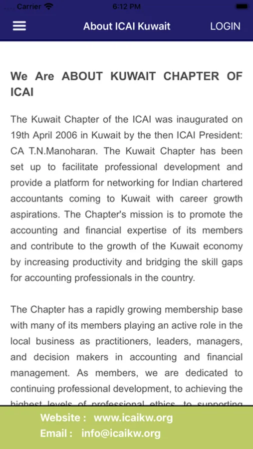 The ICAI Kuwait's mobile application brings you up-to-date key contents from its website https://icaikw.org like CPE Events, Social Events, Photo Gallery, Newsletter, & Chairperson's Message, Press Releases etc. This application is designed & developed for iOS Devices. ICAI stakeholders may download mobile application and start using it without any additional cost any time, anywhere.