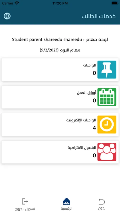 خدمات الطلاب (الواجبات الإلكترونية - الواجبات وأوراق العمل - التواصل مع المعلم - البريد - توزيع المنهج - توزيع المنهج - جدول الحصص - تقارير المستوى الأكاديمي والسلوكي - شاركنا مغامراتك - وخدمات أخرى متميزة مثل البرنامج التشجيع .. برنامج نقاطي للطلاب )