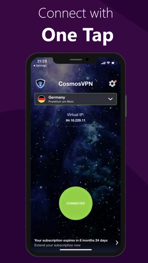 Cosmos VPN is a trusted security and virtual private network. Encrypt and secure your devices against potential cyber threats and protect your personal information from being leaked when connecting to any WiFi network around you. Protect yourself with Cosmos VPN and browse safely and anonymously today!