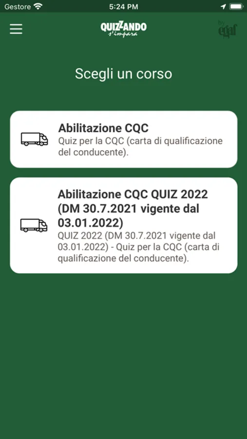 Quiz CQC è il più efficace supporto didattico ai corsi da svolgere presso le autoscuole per il conseguimento della patente CQC (Carta di Qualificazione del Conducente)