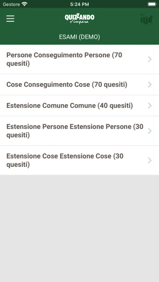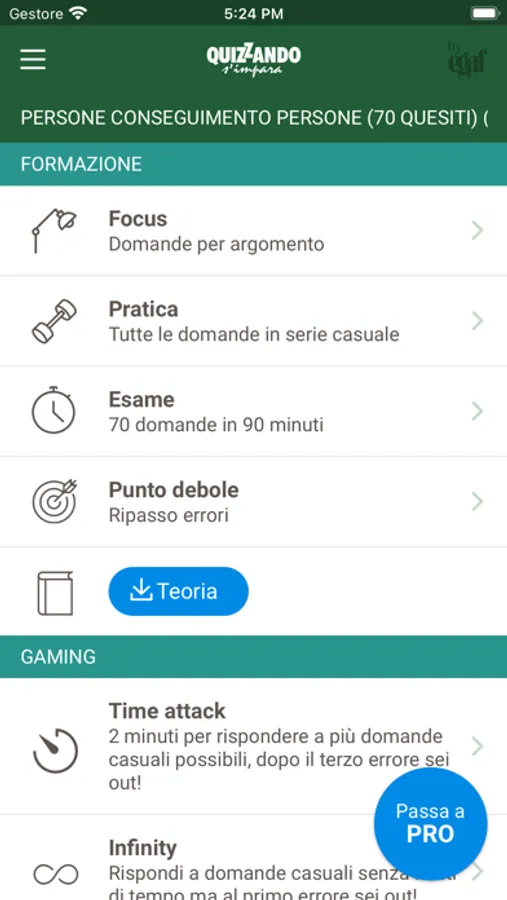 La versione Demo, gratuita, contiene un numero limitato di quiz e serve per prendere confidenza con lo strumento.