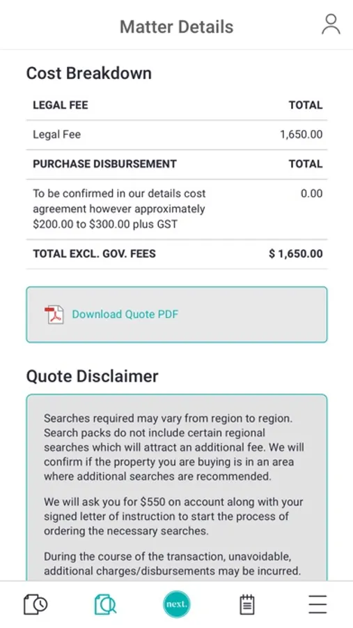 With any legal service, you’ll want visibility over the matter without having to pick up the phone! In a world of mobile devices, we now expect the ability to review progress at a time that is convenient to us. This app has been designed with features that keep you updated by providing live matter information. Whether you simply want to check the quote or if you wish to keep track of progress, this is the app for you. You’ll be able to clearly see each step in the legal matter so you understand the process.