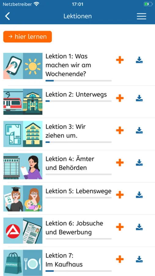 You will find our free German courses at levels A1, A2, B1 and B2 at https://vhs-lernportal.de/deutsch You can use them with any standard web browser, regardless of the device. The German courses build up your linguistic abilities systematically. Regular tests help you keep track of your progress.