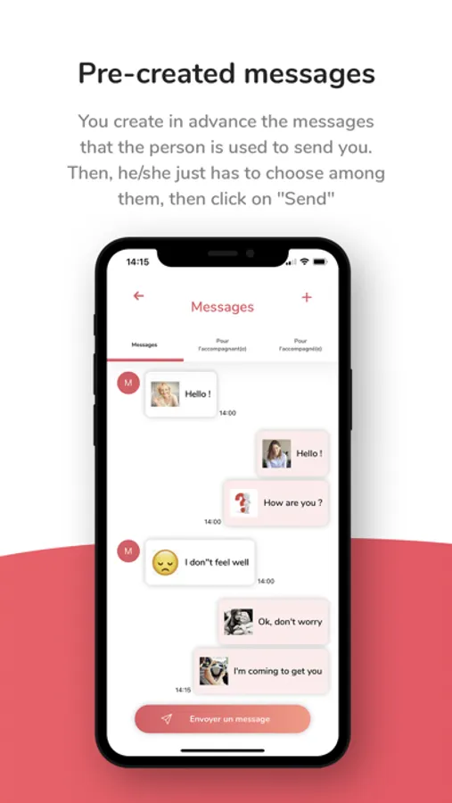 From its "Watchelp Companion" or "Watchelp Companion Phone" application, the person you are accompanying will also be able to tell you their mood thanks to four easily accessible smileys (happy, very happy, sad or angry) or trigger an alert if they find themselves in danger or in great difficulty.