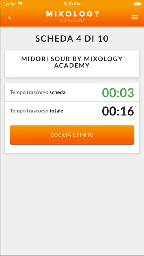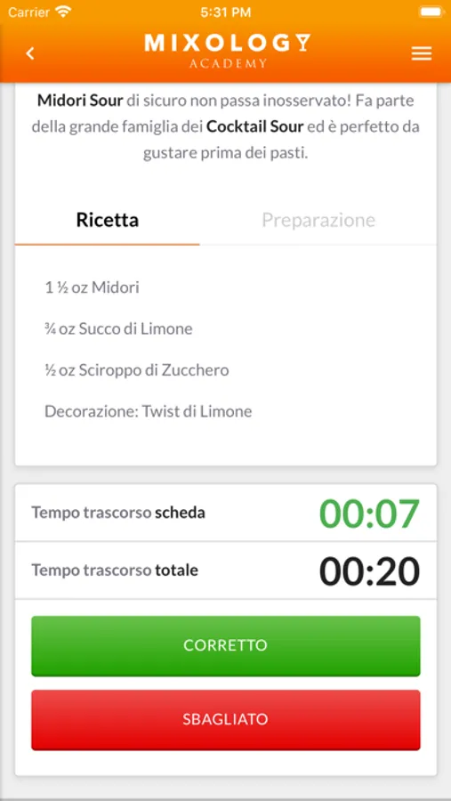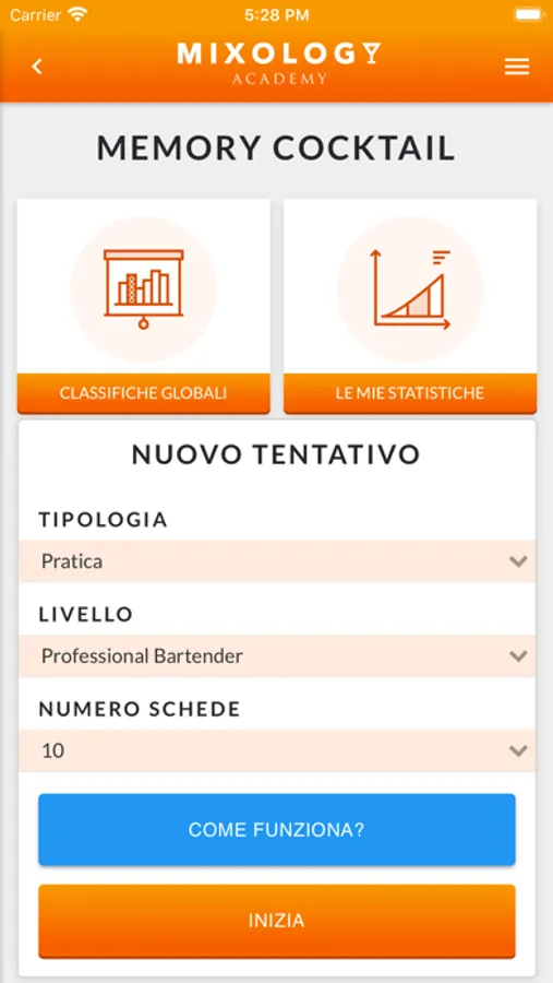 Inoltre, se hai sottoscritto l’abbonamento “Anno Accademico”, potrai usufruire anche delle funzionalità avanzate di questa App come “MEMORY COCKTAIL“ e “SPEED WORKING“ per allenarti in qualsiasi momento sulle ricette e la preparazione dei drink!